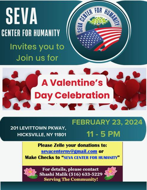 Every month Seva Center for Humanity will have sessions in Levittown Hall to promote various topics on Education, Cultural programs, Domestic violence and Health awareness. Group will continue to knit/crochet blankets for Veterans and Hat/Scarves for cancer patients.